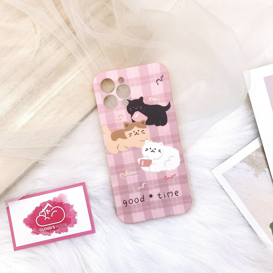 CASE IPHONE CHỐNG DỰNG MÈO HỒNG Umku FORM VUÔNG DÀY CHỐNG SHOCK