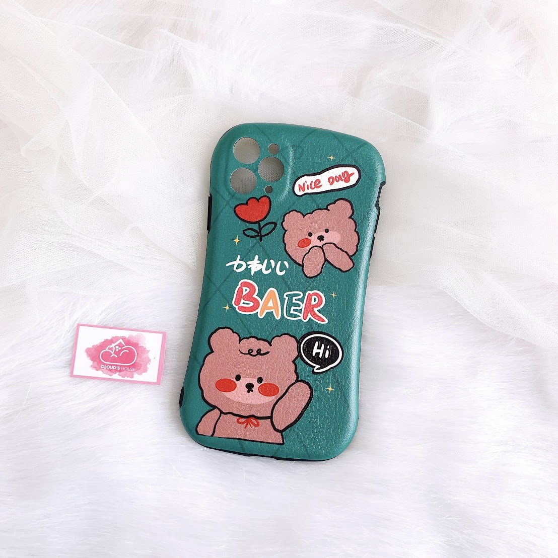 CASE IPHONE Gấu Xanh lá Đáng Yêu Nhám Da Dẻo Phôi Bầu Chống Shock