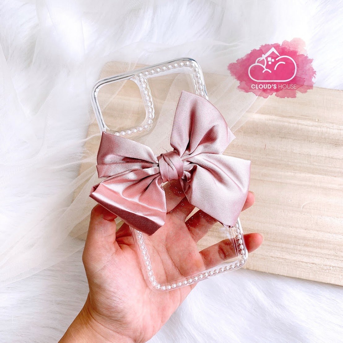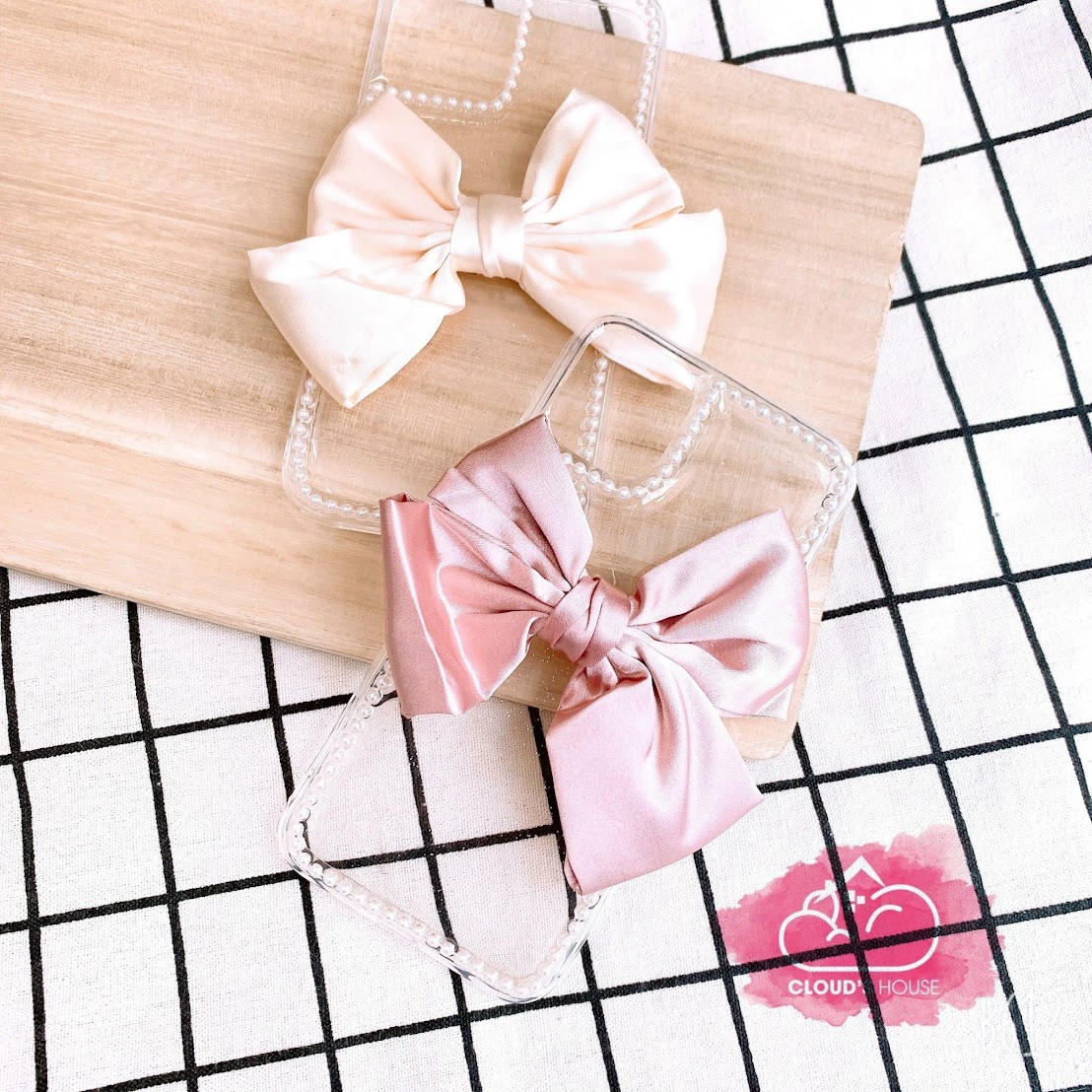 CASE iPhone NƠ VẢI TRONG SUỐT ( 2 mẫu).
