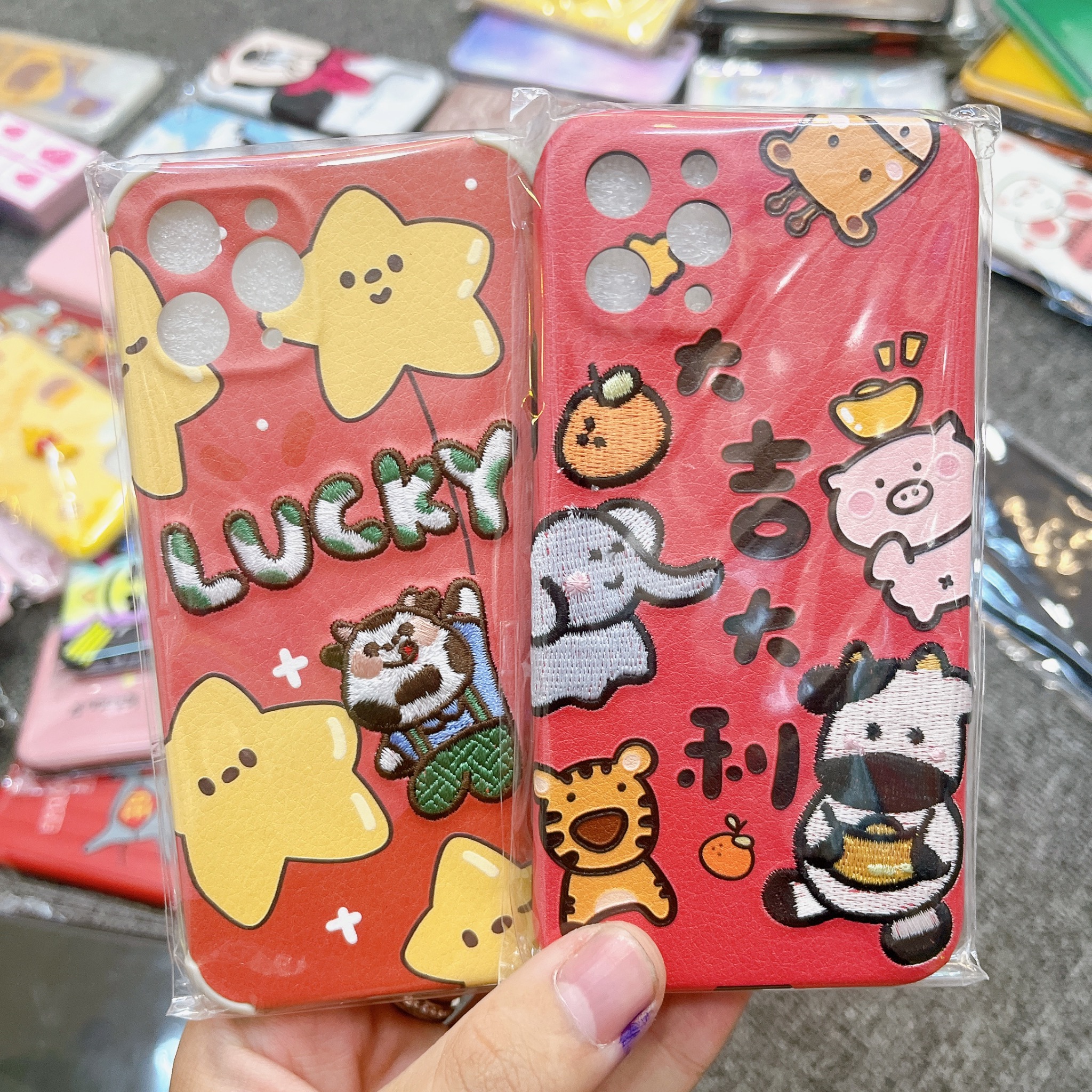 Case Ốp điện thoại iPhone Bò sữa Nhám da thêu nổi May mắn