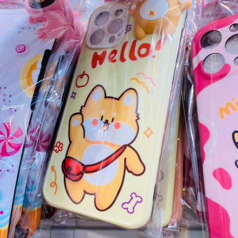 Case Ốp điện thoại iPhone Chó Shiba đi học icon nổi nền vàng - hồng nhám bóng KHUYẾN MÃI - ƯU ĐÃI