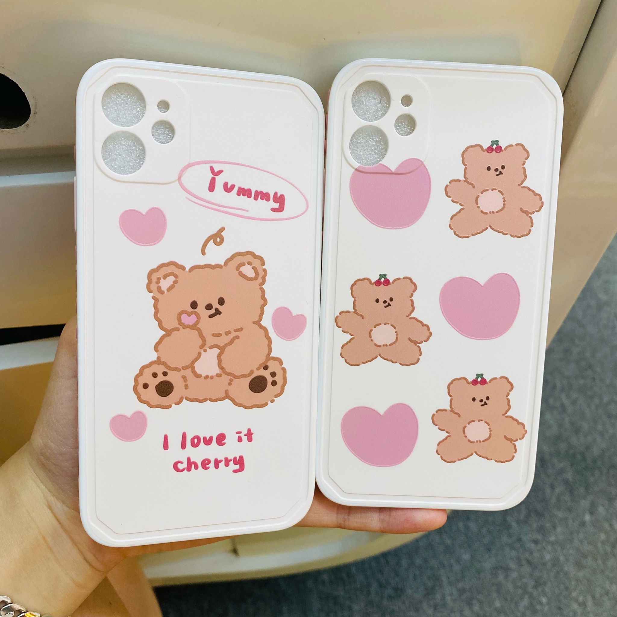 Case Ốp điện thoại iPhone Gấu chất bóng dẻo form vuông nền trắng