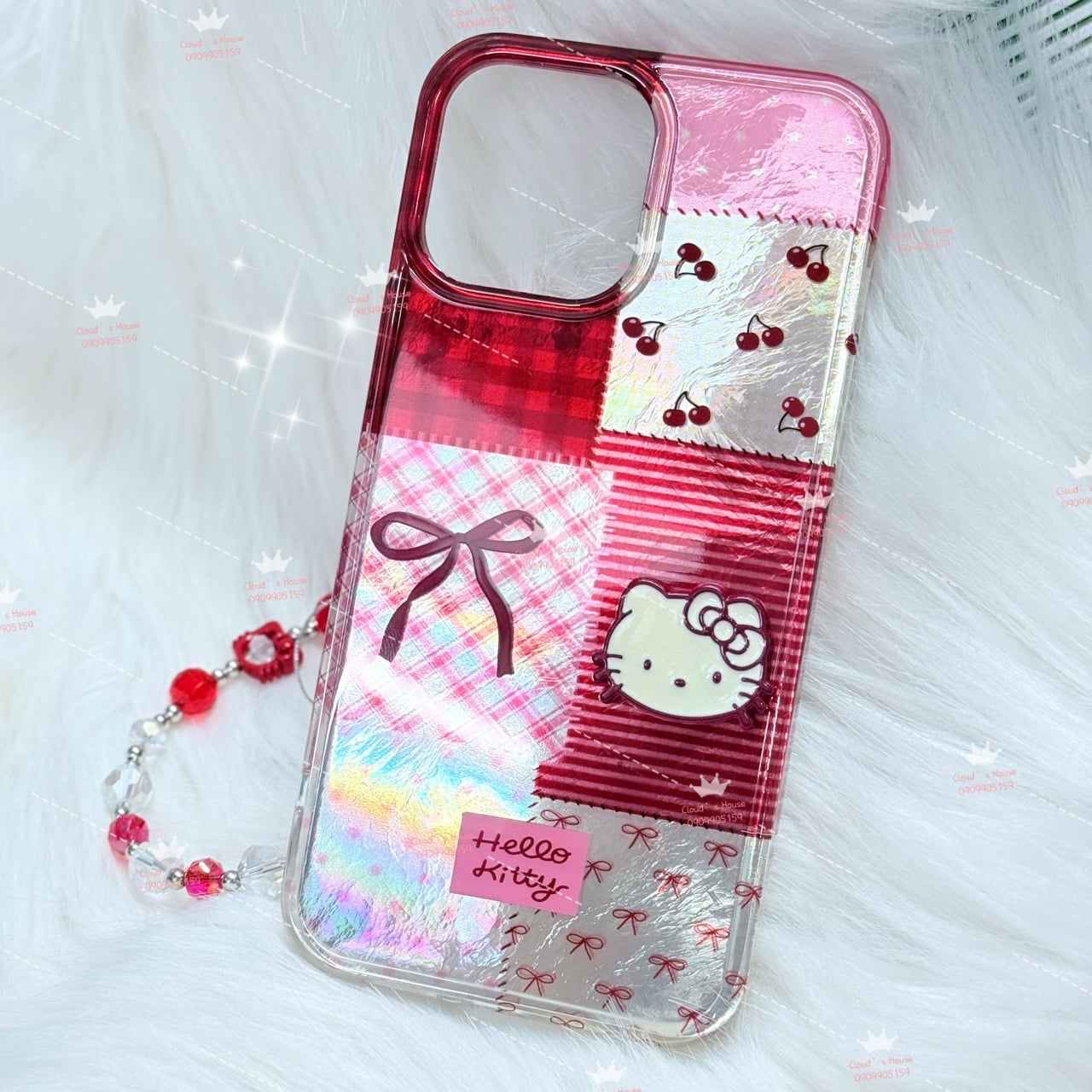 Case Ốp điện thoại iPhone Hello Kitty Hologram Bling Bling Icon nổi iPhone 13/14/15/16/17/Pro/Promax KHUYẾN MÃI - ƯU ĐÃI