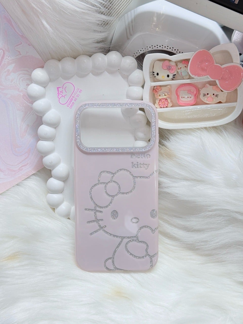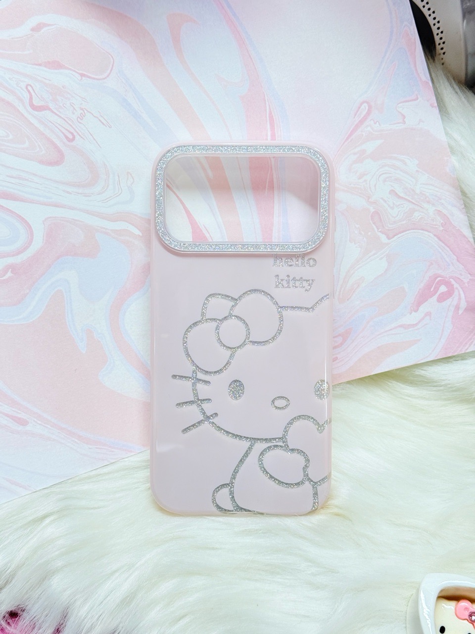 Case Ốp điện thoại iPhone Hello Kitty Hồng Nhạt Viền Camera Bling Bling iPhone 17/Pro/Promax