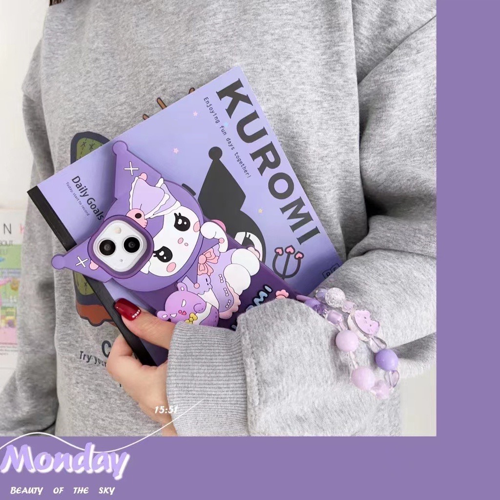 Case Ốp điện thoại iPhone Kuromi Su dẻo Chống shock Kèm dây đeo điện thoại iPhone 11/12/13/14/Pro/Promax KHUYẾN MÃI - ƯU ĐÃI