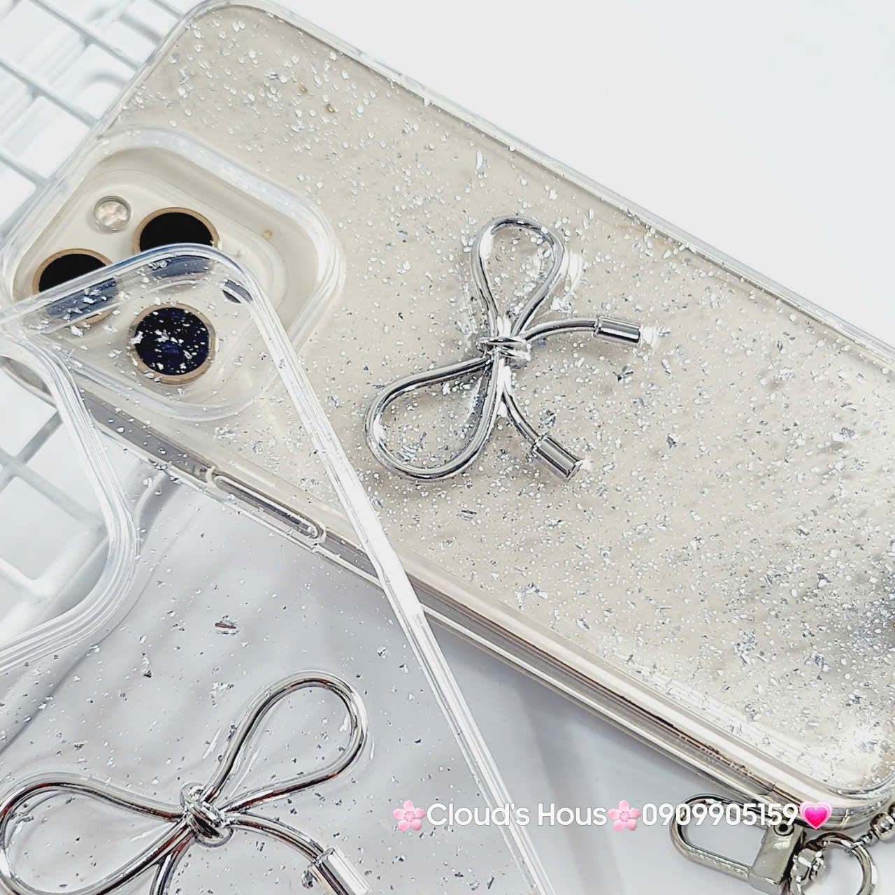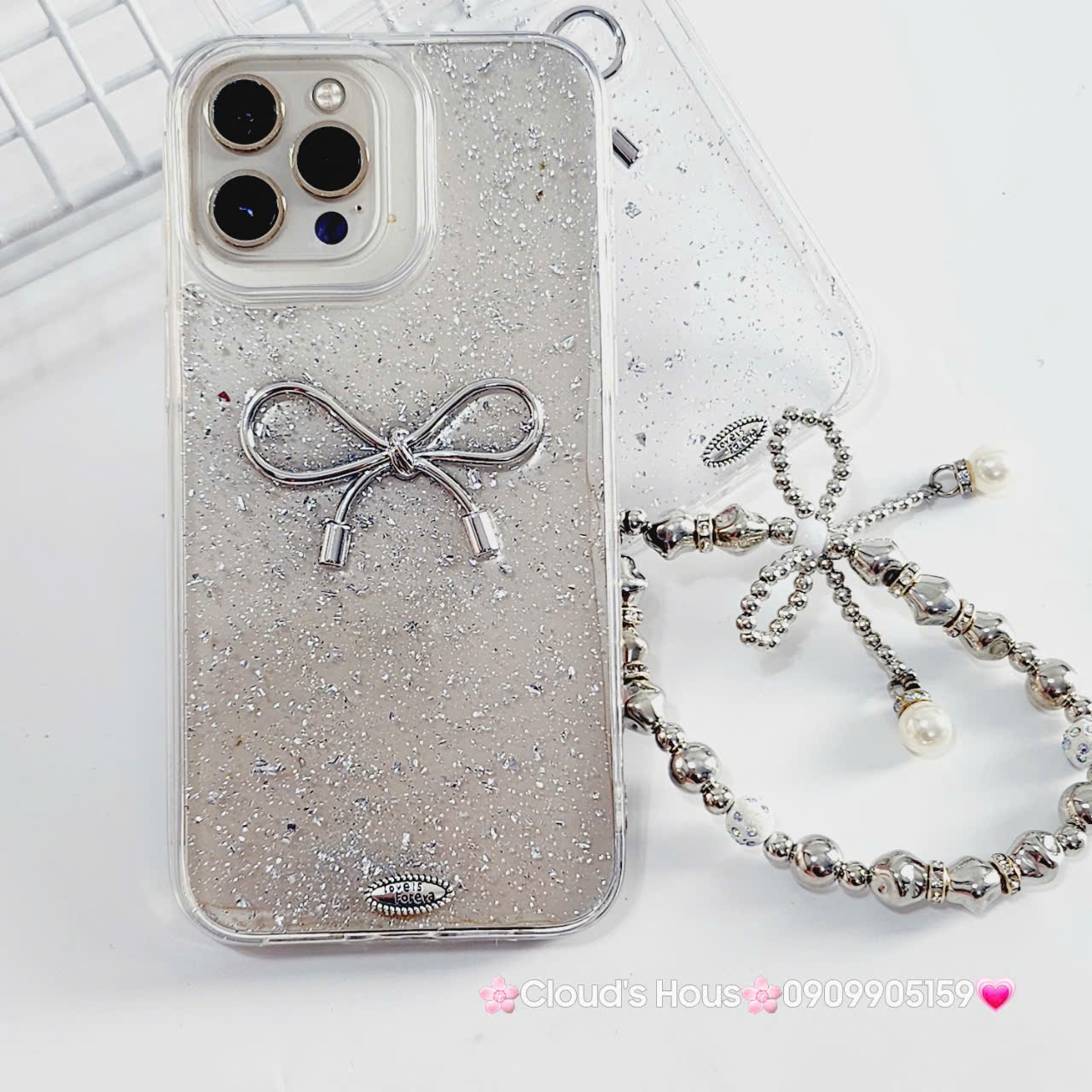 Case Ốp điện thoại iPhone Nơ Bạc Trong Bling Bling iPhone 12/13/14/15/Plus/Pro/Promax KHUYẾN MÃI - ƯU ĐÃI