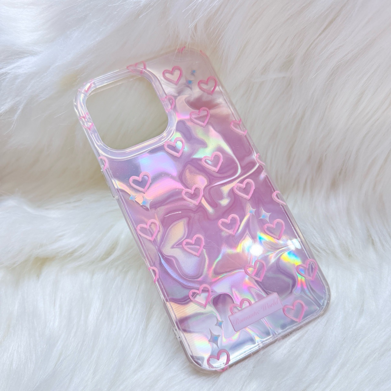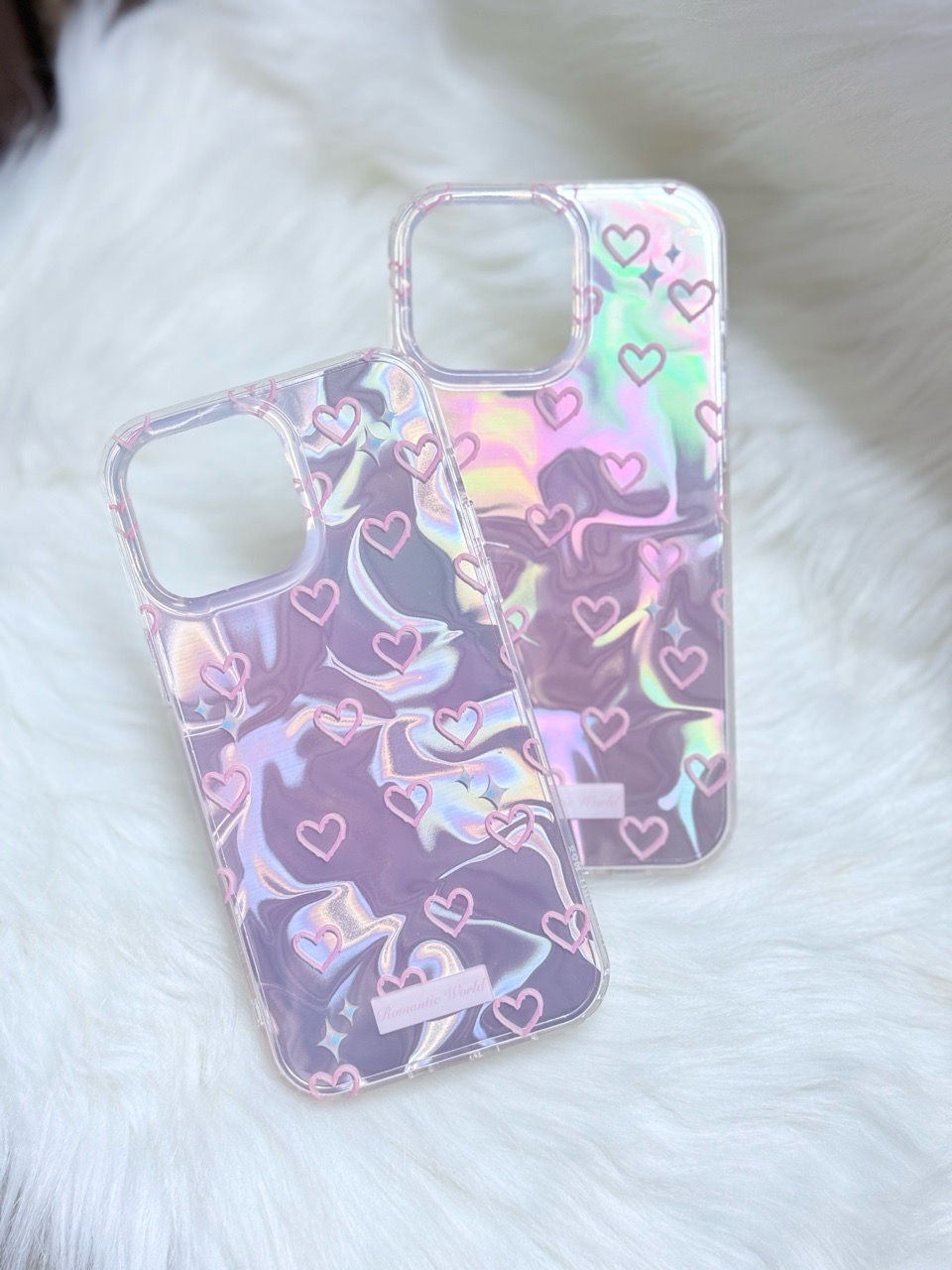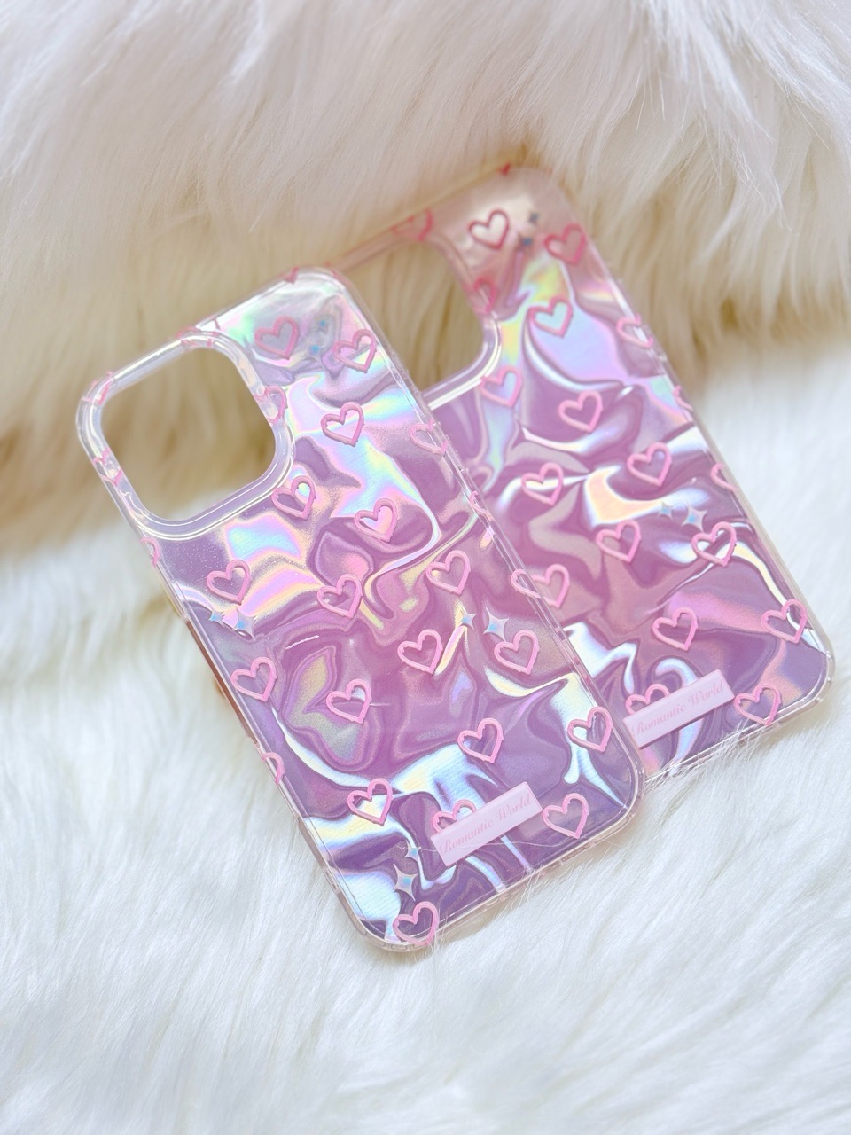 Case Ốp điện thoại iPhone Tim Hồng Ánh Bạc Hồng Hologram iPhone 12/13/14/15/16/Pro/Promax