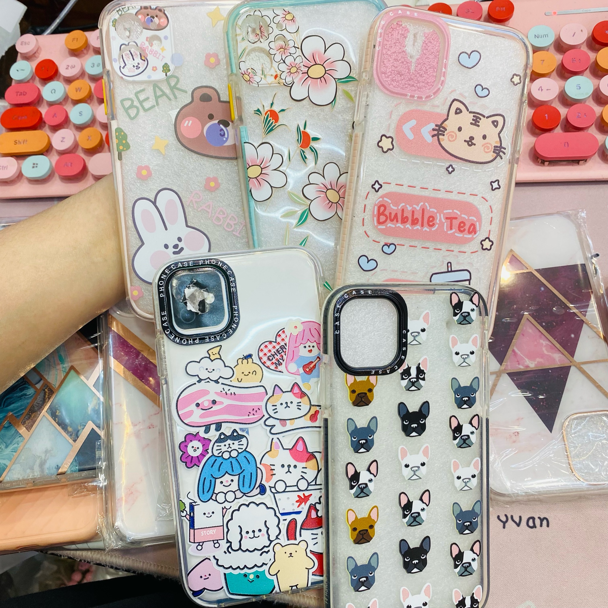 Case Ốp điện thoại iPhone Trong Chống Shock viền màu in hình kute (mẫu lẻ)