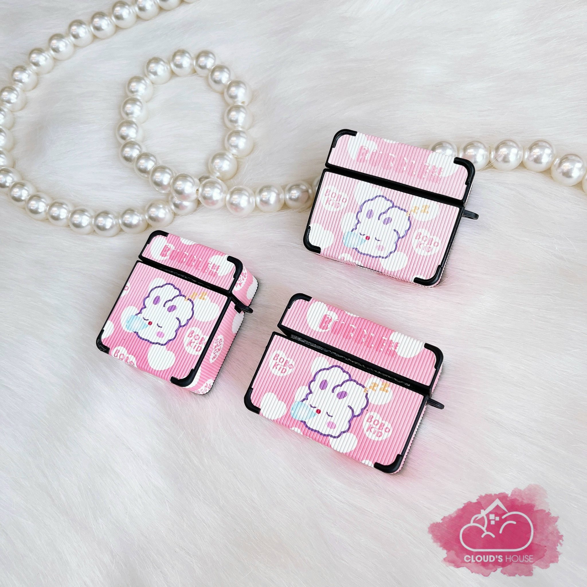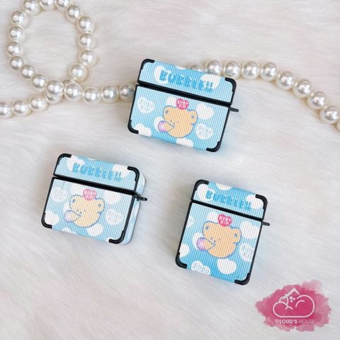 COVER AIRPOD Gấu Form Vuông sọc nhám da