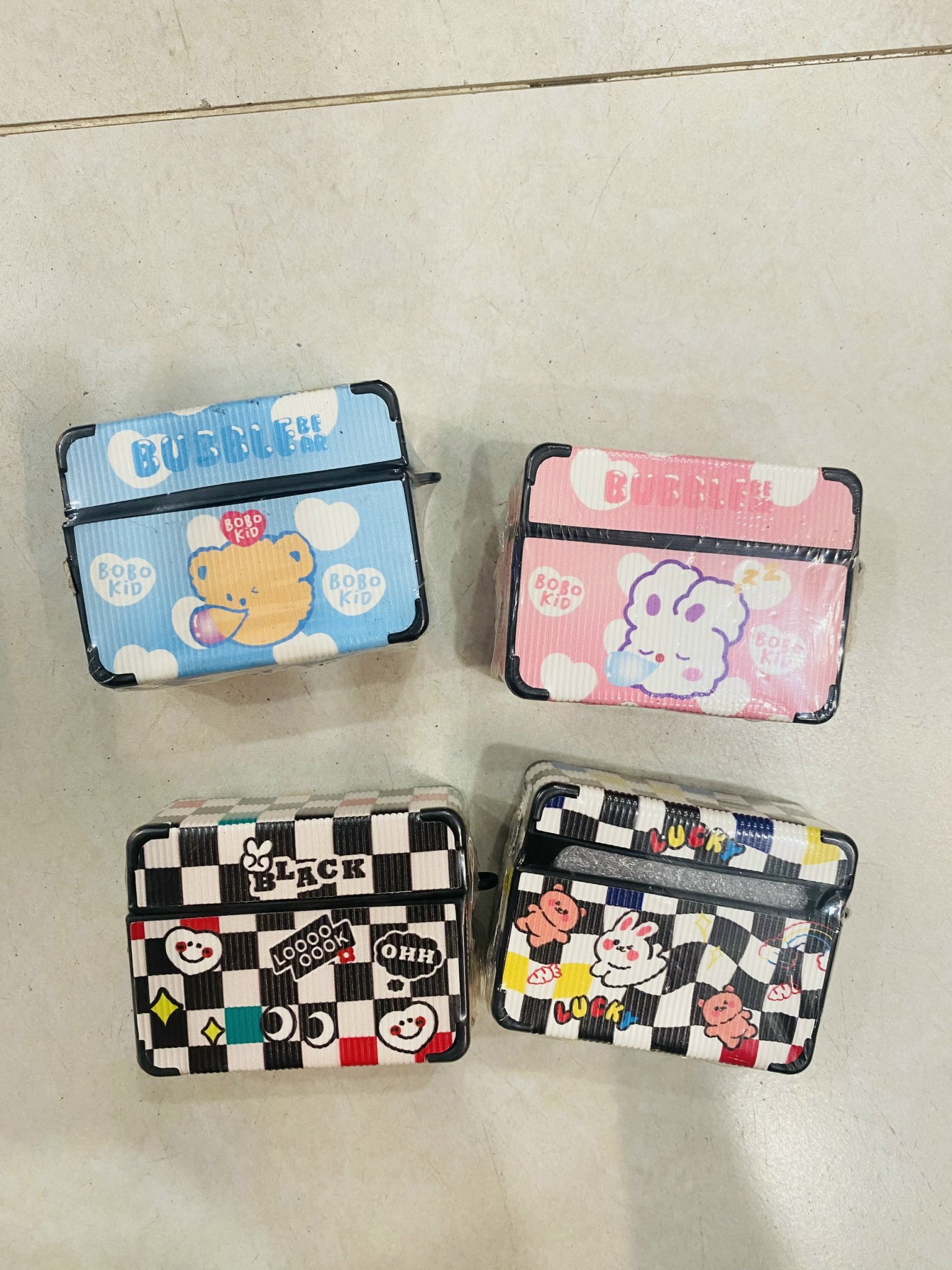 COVER AIRPOD Gấu Form Vuông sọc nhám da KHUYẾN MÃI - ƯU ĐÃI