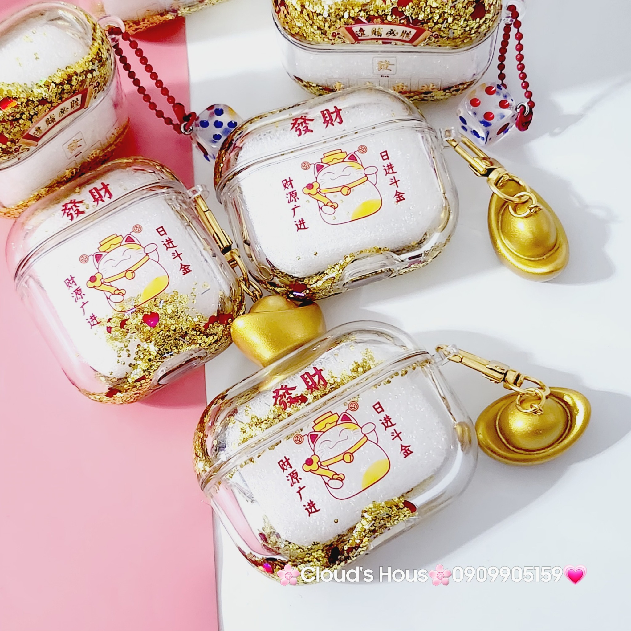Cover Case Vỏ bảo vệ Airpod Mèo Nước Bling Thần Tài Charm Thỏi Vàng Airpod 1/2/3/Pro/Pro2 - TẾT KHUYẾN MÃI - ƯU ĐÃI