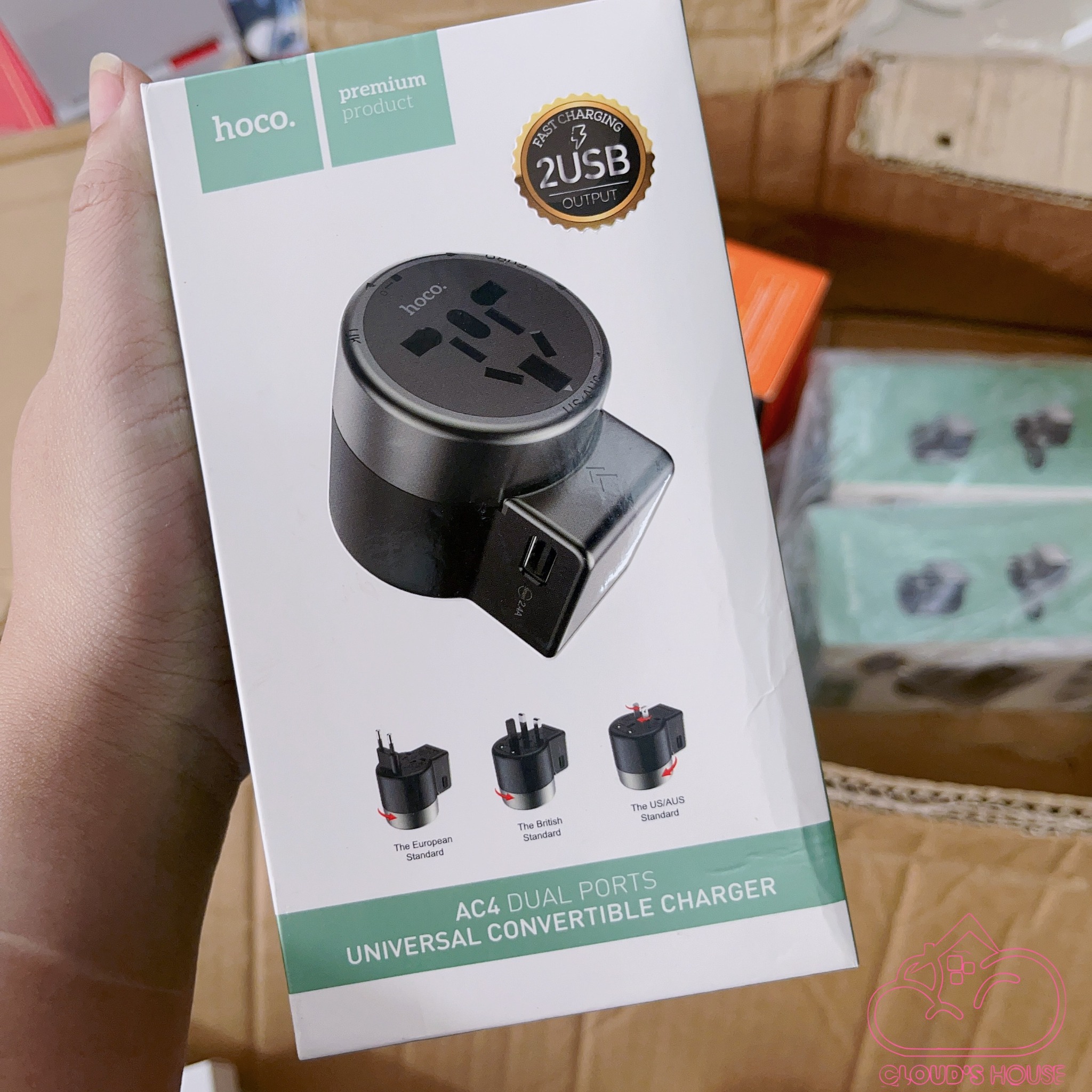 Thương hiệu: CHÍNH HÃNG HOCO Mô hình: AC4 Màu sắc: Đen Chất liệu: "ABS + PC" Vật Liệu Chống Cháy AC Cổng Đầu Ra: Max. 6A, Universal Tương Thích Hỗ trợ: EU/MỸ/AU/Phích Cắm UK Giao diện: USB Dual USB Đầu Ra: 5 V/2.4A Kích thước: 74X59X57mm/2.91X2.32X2.24" Trọng lượng: 128G