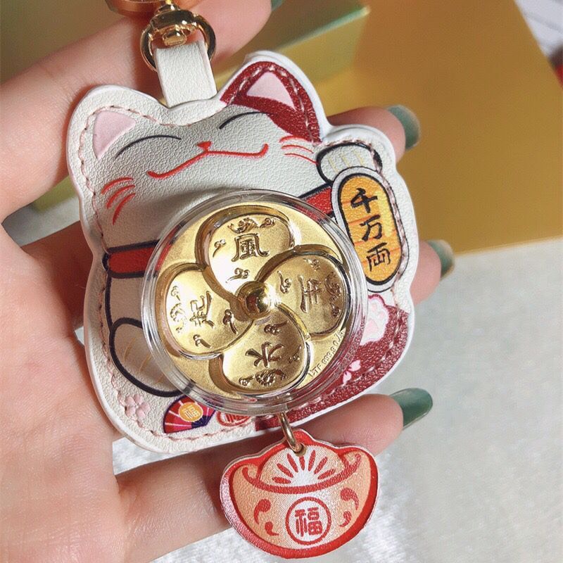 Móc khoá Mèo may mắn Da Con quay