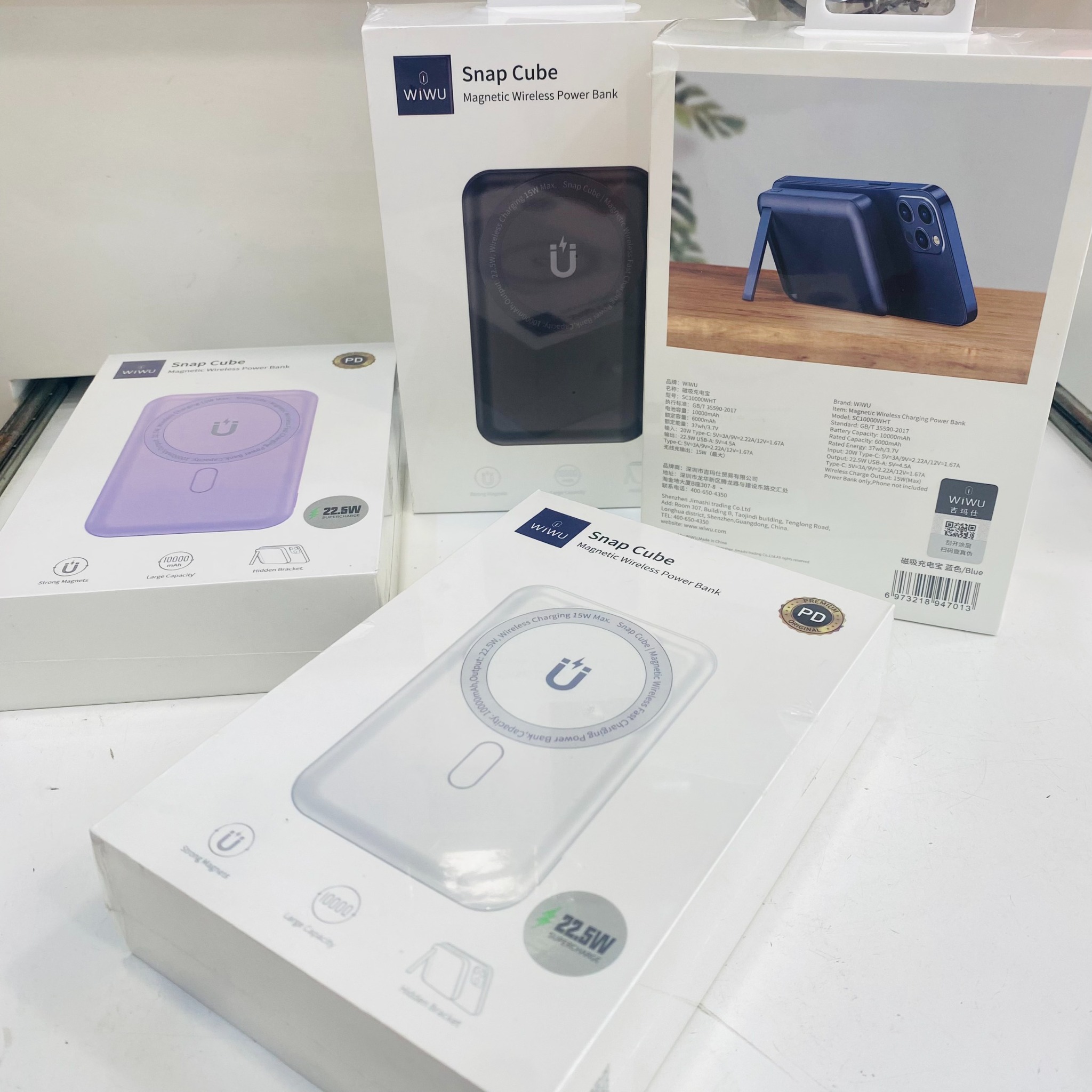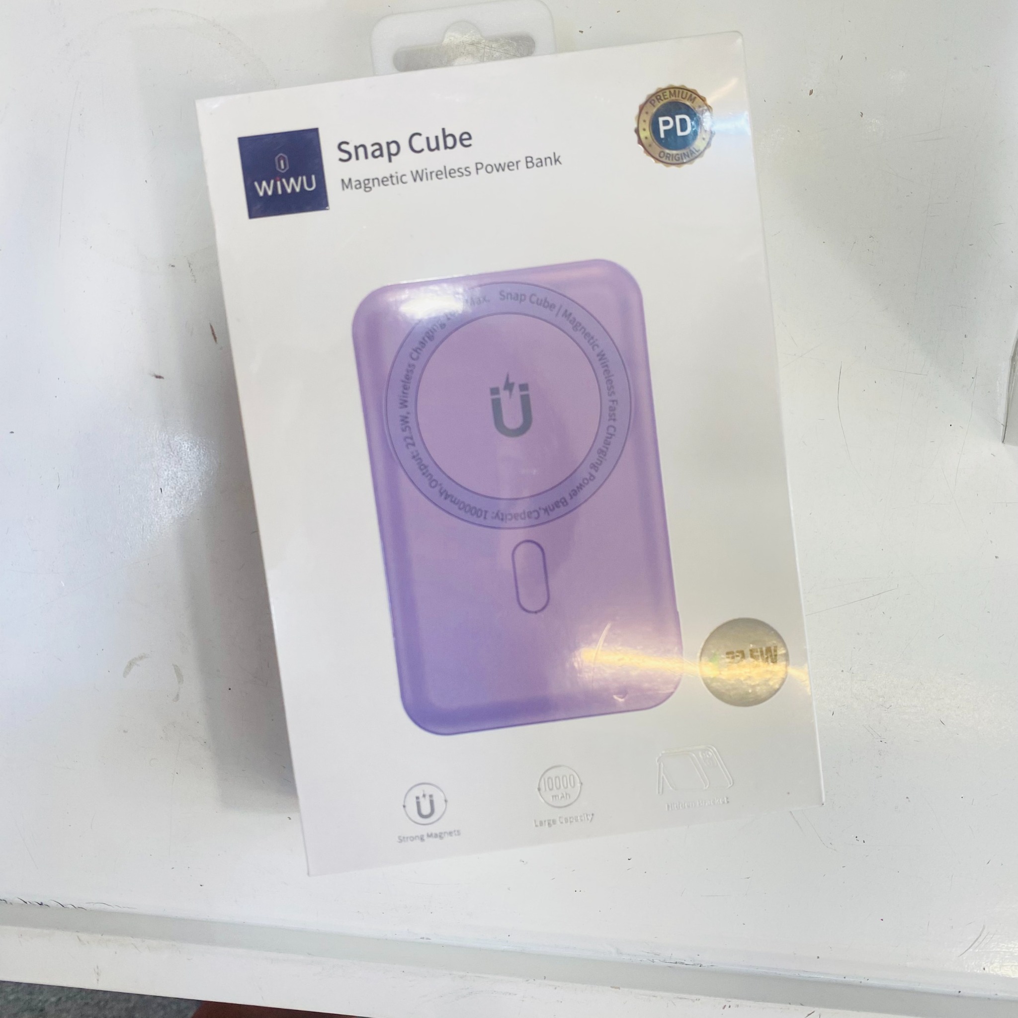 - WIWU Snap Cube Pin sạc dự phòng dung lượng 10.000 mAh là loại siêu nhỏ gọn thích hợp sạc hút từ tính chắc chắn kiêm luôn giá đỡ rất nhiều tính năng trong cục sạc dự phòng này